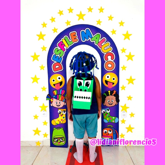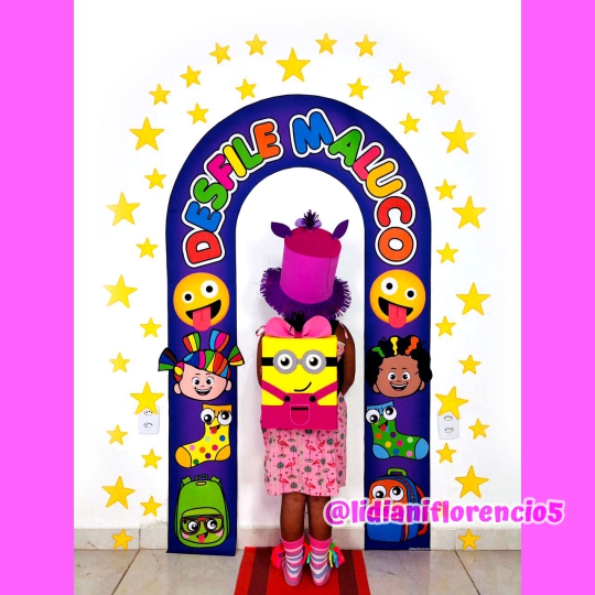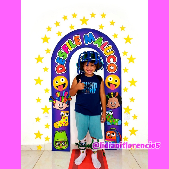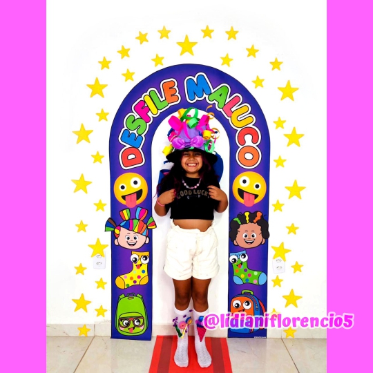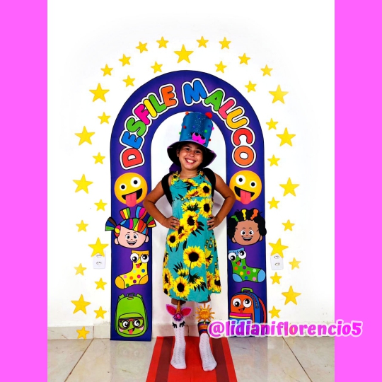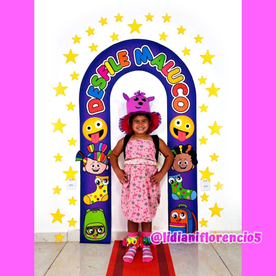 Este arquivo digital pronto para imprimir cria um arco super colorido para o Desfile Maluco — perfeito para registrar os looks de meias, chapéus e mochilas mais divertidos.