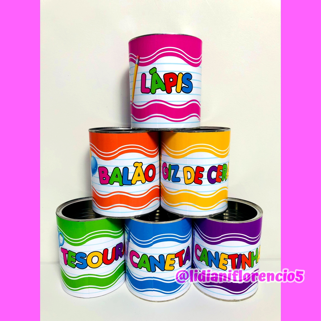 🧃🎒 RÓTULO LATAS ORGANIZADORAS – Sala mais prática e colorida!